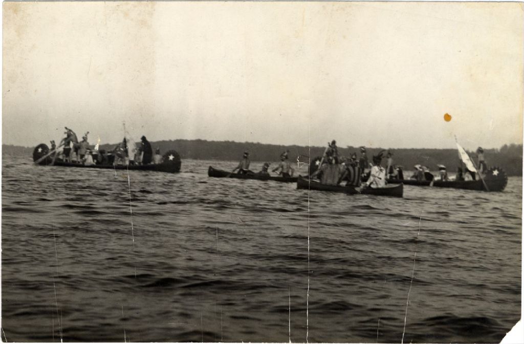 Cérémonie - reconstitution historique de l’arrivée de Samuel de Champlain à Penetanquishene, 3 août 1923, Archives nationales à Québec, Collection Julienne Sioui, (03Q,P907,P74), Photographe non identifié.