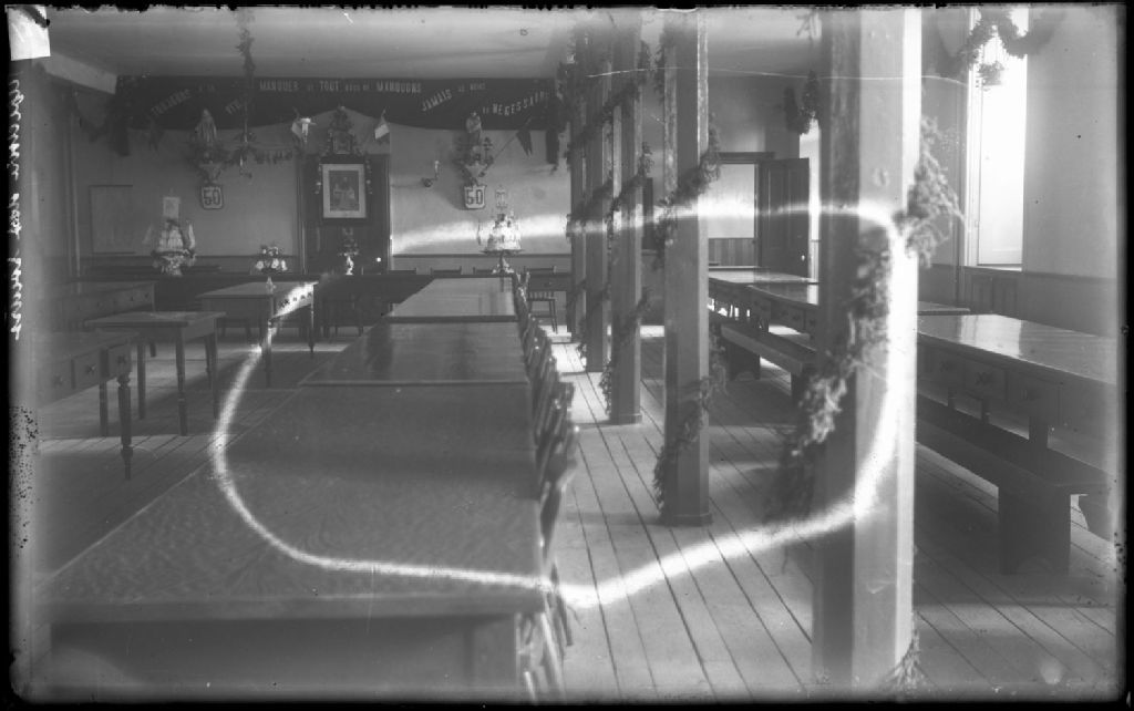 Maison-Mère - Réfectoire des sœurs, 1899, Archives nationales à Québec, Fonds Les Soeurs de la Charité de Québec, (03Q,P910,S1,D1,P59), Sr Marie-de-l’Eucharistie (Elmina Lefebvre).