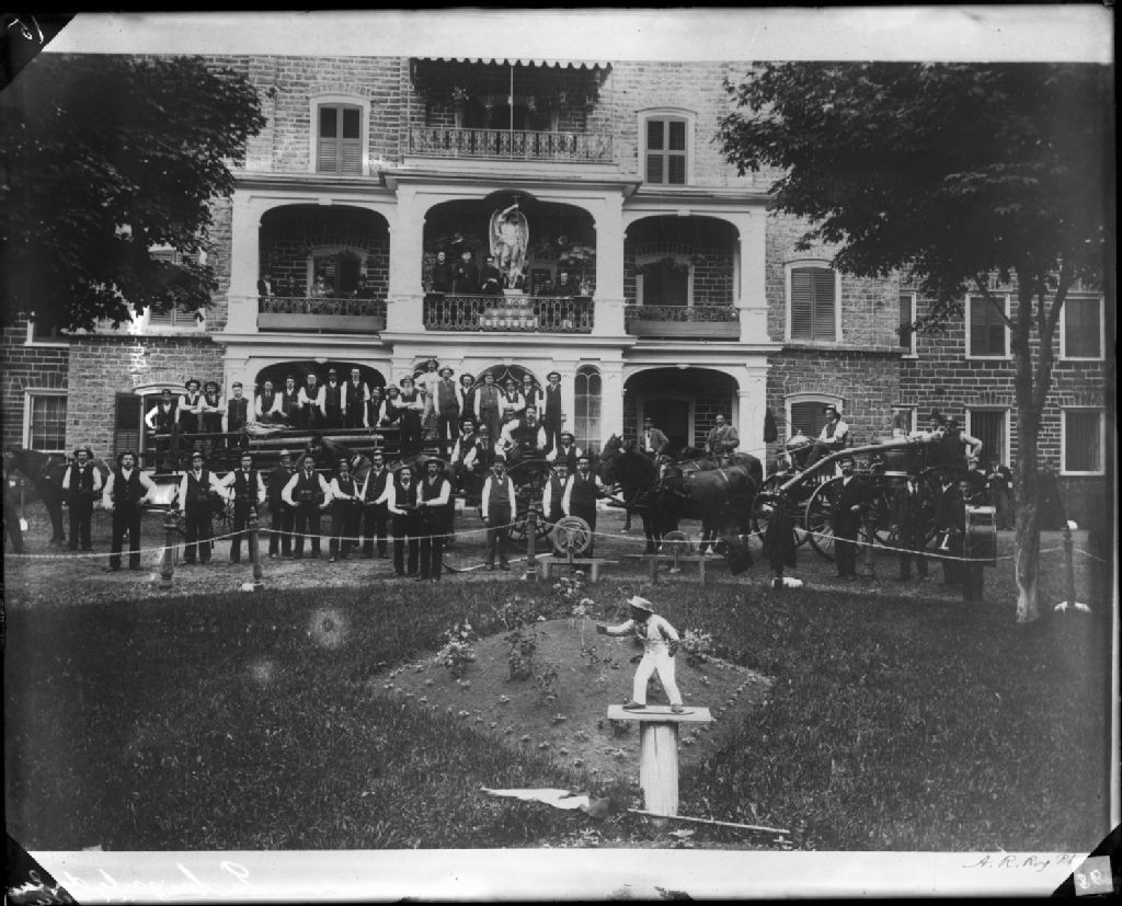 La brigade du feu à l'asile - Asile Saint-Michel-Archange, 1899, Archives nationales à Québec, Fonds Les Soeurs de la Charité de Québec, (03Q,P910,S3,D4,P48), A. R. Roy phot.