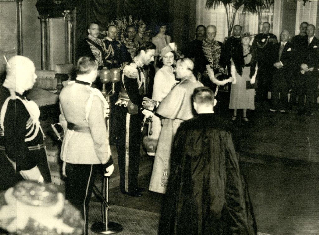 - Ce dossier se compose de photographies du voyage de leurs majestés le roi Georges VI et la reine Elizabeth en 1939.Nous voyons le couple royal lors des activités suivantes : visite au Conseil législatif; visite de la Citadelle; déjeuner du gouvernement du Canada au Château Frontenac; procession dans la ville de Québec.Nous apercevons les personnages suivants : Lucien Borne, maire de Québec; Philipp. Carrington, Lord Bishop de Québec; W.E. Foster, président du Sénat; E. Lapointe, ministre de la Justice; W.L. Mackenzie-King; C. G. Power, ministre des Pensions et de la Santé; le cardinal Rodrigue villeneuve, archevêque de Québec