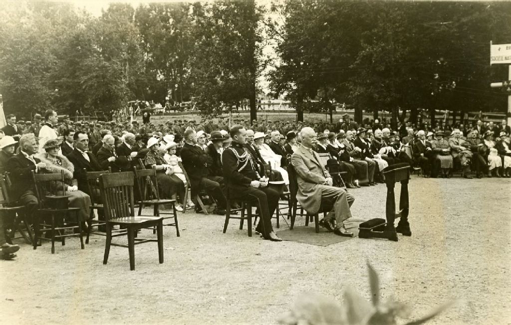 - Ce dossier se compose de photographies prises lors d'activités sociales et politiques d'Ésioff-Léon Patenaude dans le cadre de ses fonctions de lieutenant-gouverneur. Nous retrouvons, entre autres, des photographies d'un rassemblement de zouaves pontificaux et une autre d'une rencontre de la Société du parler français le 12 février 1936. Plusieurs photographies sont produites par le Canadian Gouvernment Motion Picture Bureau