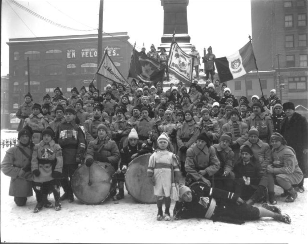 Club de raquetteurs Le Montagnard, [Vers 1926], Archives nationales à Montréal, Collection Scènes de rues de Montréal, (06M,P20,S3,P64), Photographe non identifié.