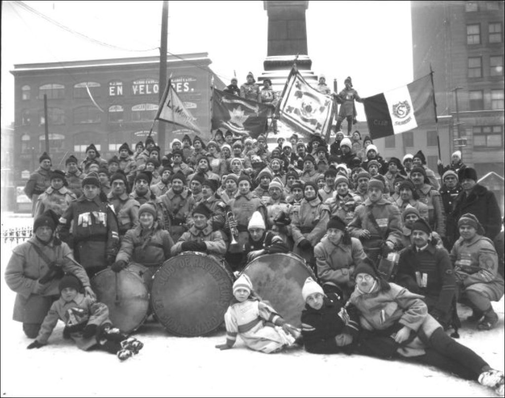 Club de raquetteurs Le Montagnard, [Vers 1926], Archives nationales à Montréal, Collection Scènes de rues de Montréal, (06M,P20,S3,P66), Photographe non identifié.