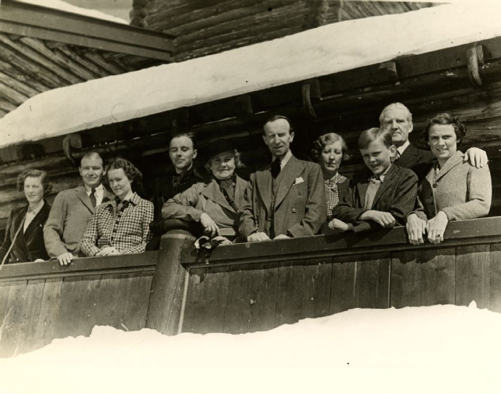 Photo de groupe prise dans une résidence secondaire de Val-David, [Vers 1935-vers 1939], Archives nationales à Montréal, Collection Charles Robert William Gordonsmith, (06M,P32,S4,P134), Photographe non identifié.