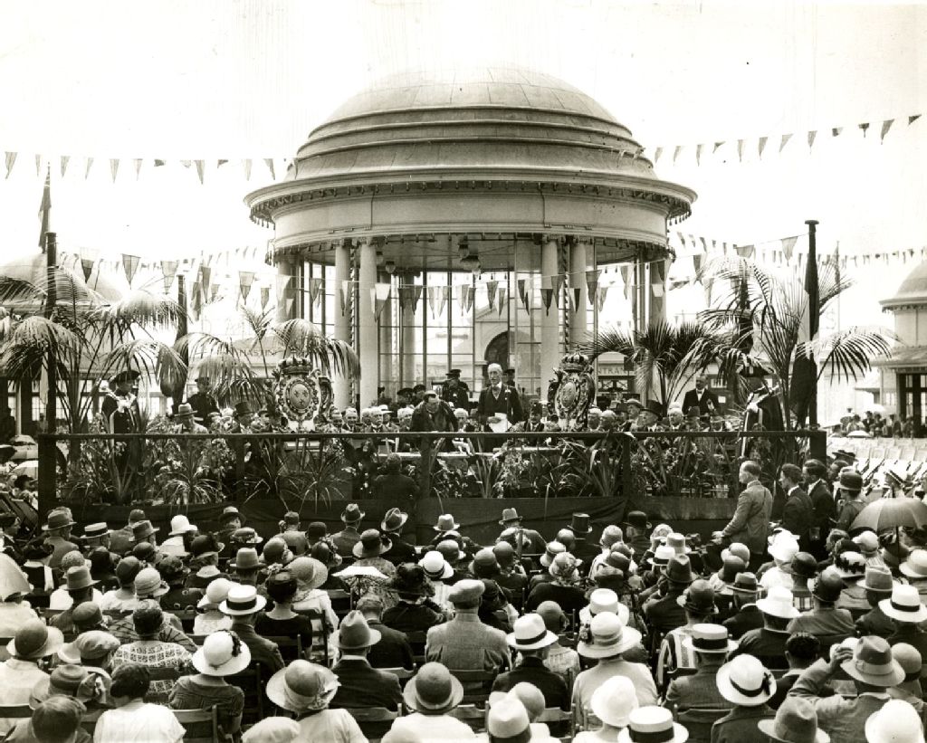 Cérémonie lors de la remise de l'emblème de Québec (16 juillet 1925) par la ville d'Hastings, 1925, Archives nationales à Montréal, Collection Charles Robert William Gordonsmith, (06M,P32,S4,P38), Photographe non identifié.