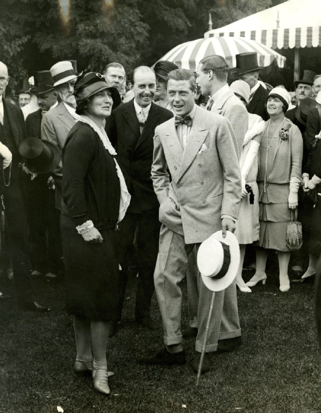Le prince de Galles (futur roi Édouard VIII) causant avec l'honorable Marguerite Shaunessy lors d'un garden party donné en son honneur, à la demeure du Sénateur W. L. McDougald au club du Mont-Royal à Montréal, 1927, Archives nationales à Montréal, Collection Charles Robert William Gordonsmith, (06M,P32,S4,P81), Photographe non identifié.