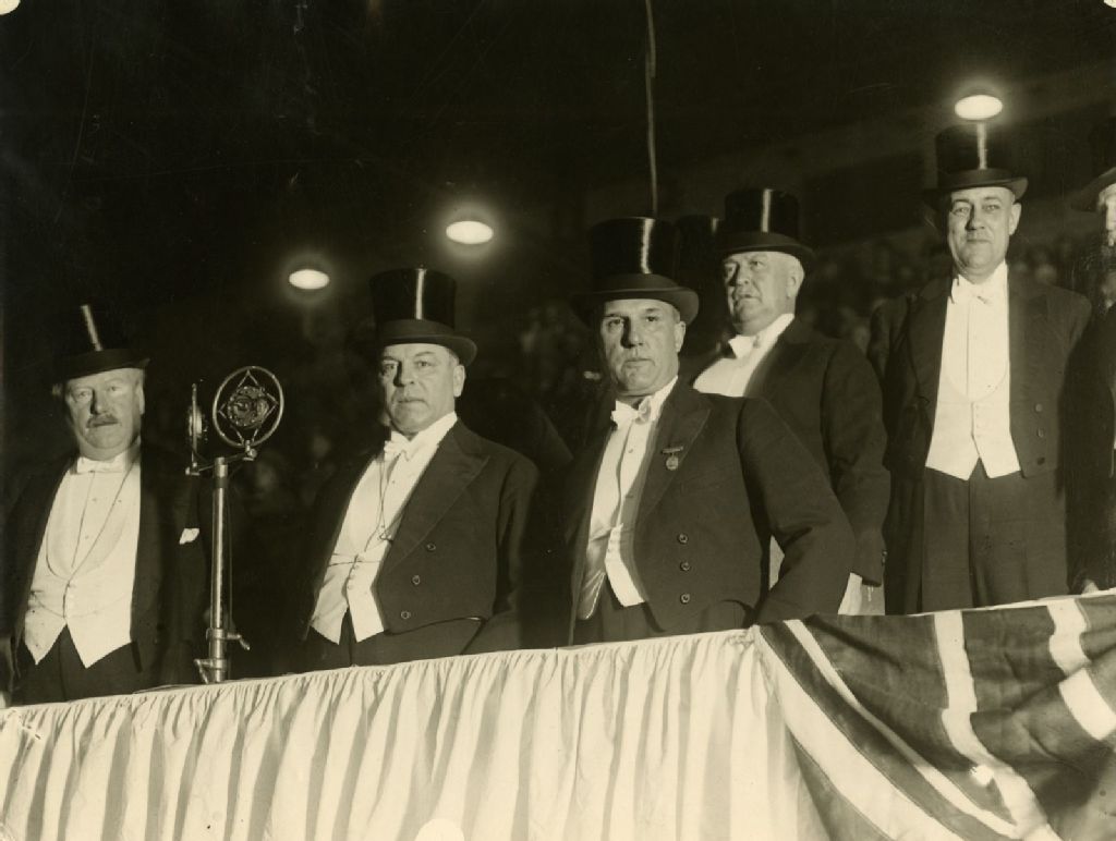 L'honorable W.D. Ross, lieutenant-gouverneur de l'Ontario, l'honorable William Lyon Mackenzie King (1874-1950), Premier ministre du Canada (1921-1930 et 1935-1948), Monsieur Bult, Monsieur Mcbride, maire de Toronto et Monsieur Dryden