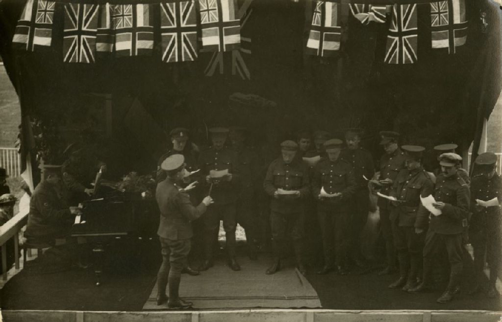 Choeur fomé de militaires en récital à l'Hôpital canadien de Saint-Cloud (France)