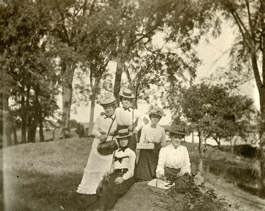 Maria Clément, C. et L. Robitaille, E. Burman et Anna Clément à l'île Sainte-Hélène, [Vers 1906], Archives nationales à Montréal, Fonds Béatrice Clément, (06M,P43,S4,P204), Clément, Béatrice.
