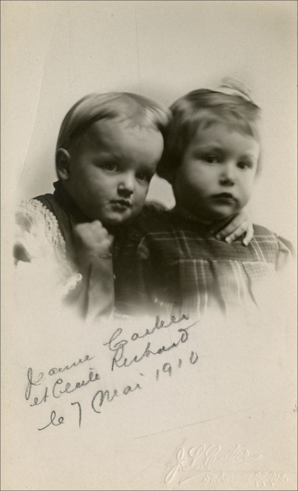 Jeanne Cartier et Cécile Richard, 7 mai 1910, Archives nationales à Montréal, Collection Famille Cartier-Richard, (06M,P62,D256), Joseph-Louis Cartier.