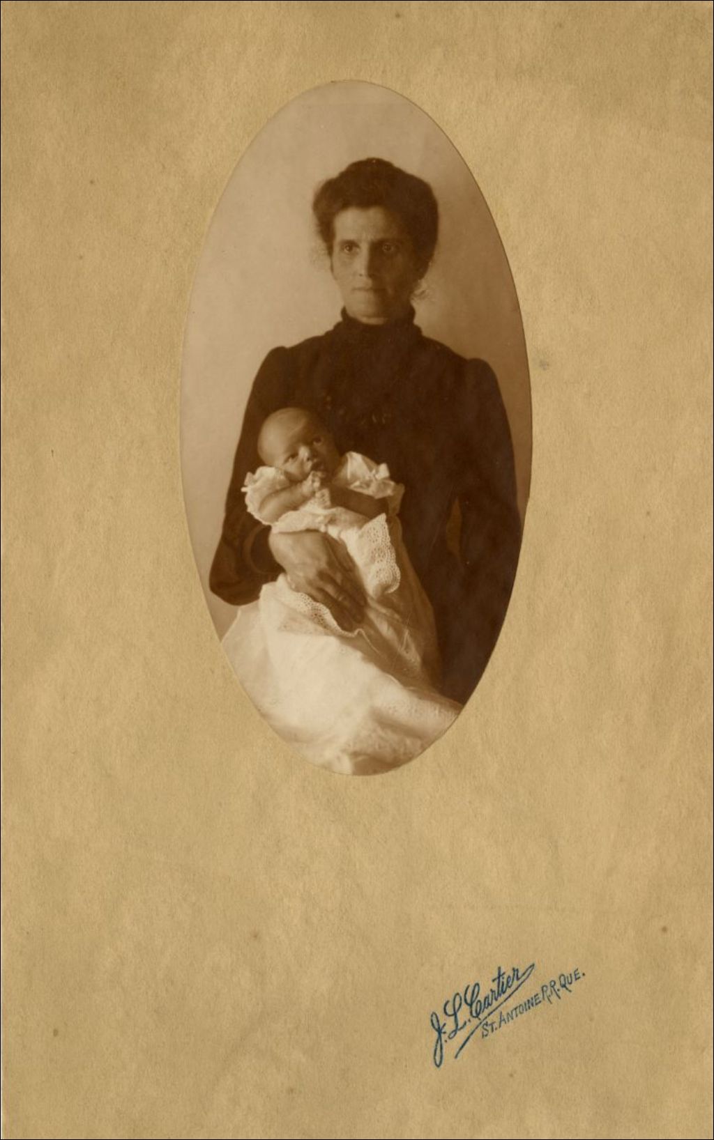 Cécile Richard, âgée d'un mois avec une infirmière
