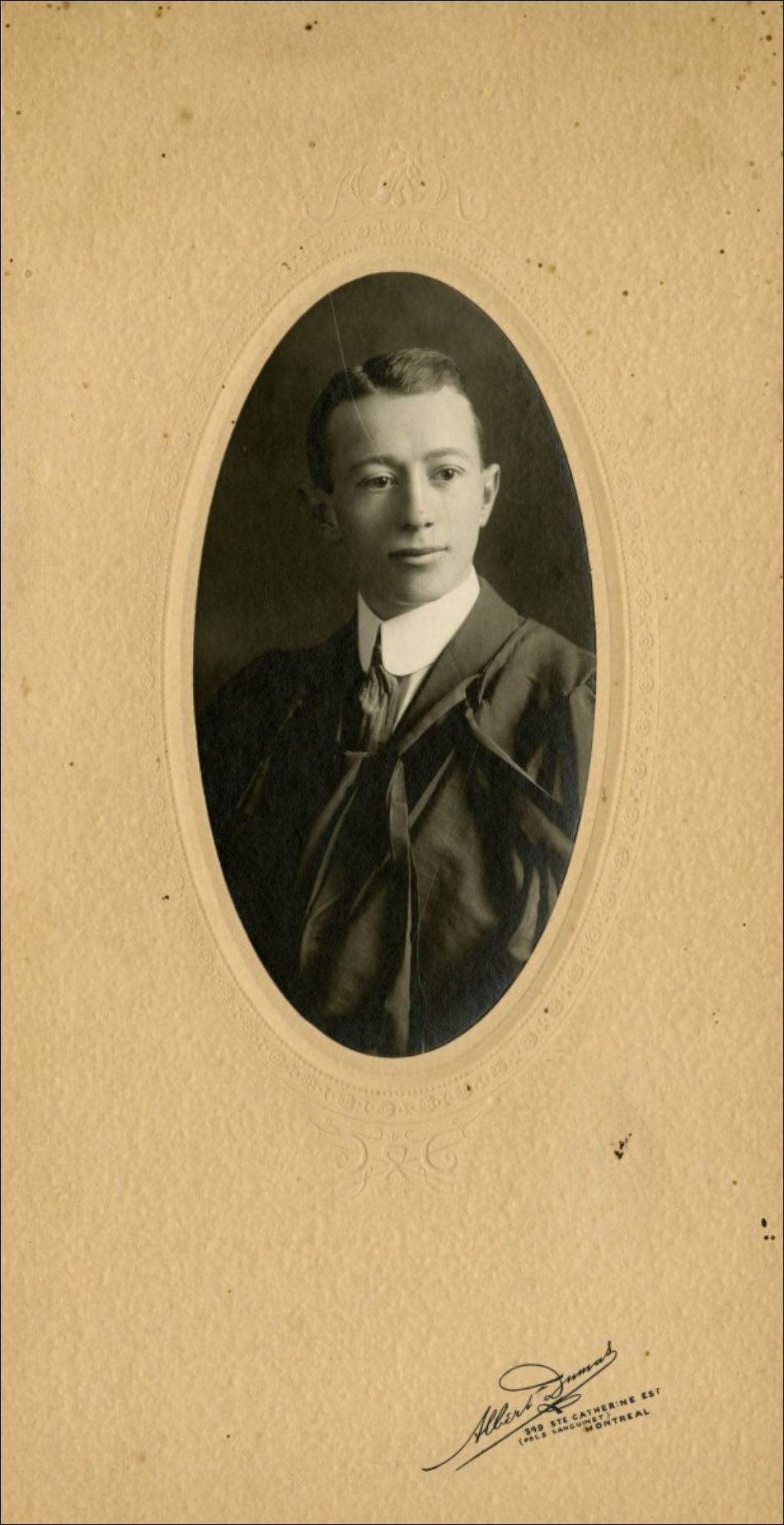 Portrait d'Émile Simard, fils d'Eugène, en diplômé, [Vers 1915], Archives nationales à Montréal, Collection Famille Cartier-Richard, (06M,P62,D341), Albert Dumas.