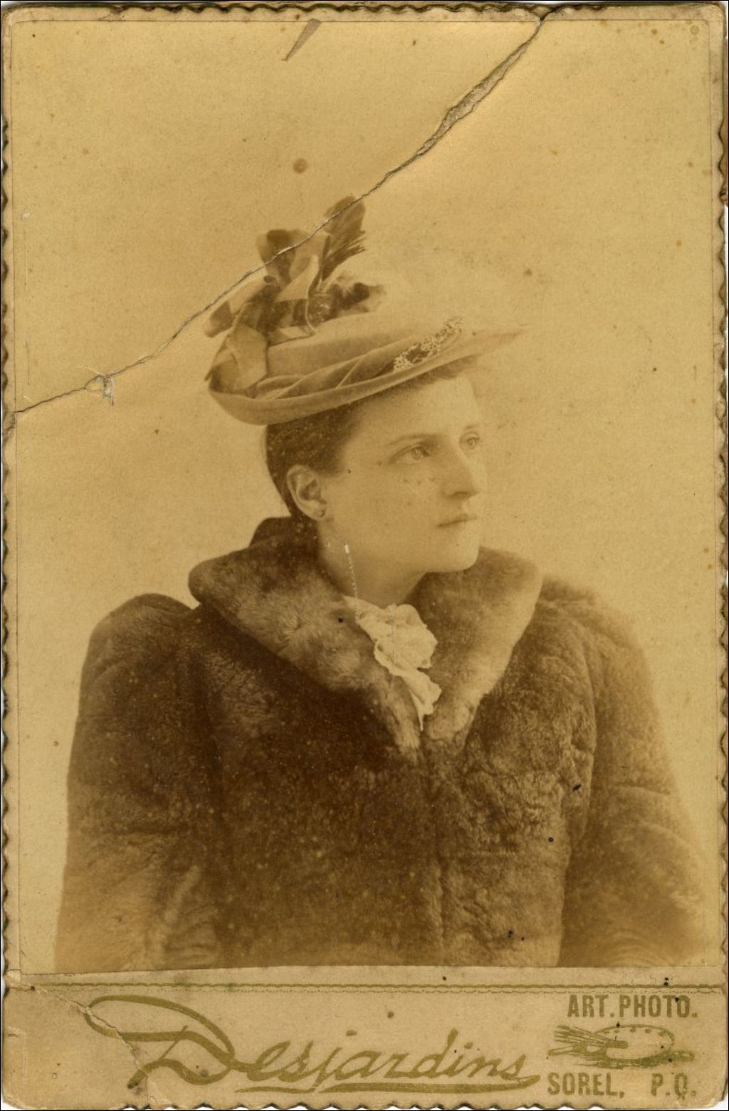 Marie Gervais, épouse du docteur Charles Tétrault, porte un chapeau et un manteau de fourrure