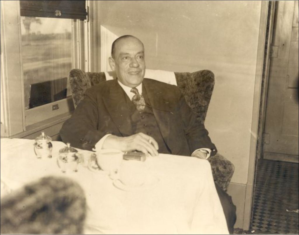 À bord du train, Camillien Houde à son retour du camp d'internement de Frédéricton, [14-16 août 1944], Archives nationales à Montréal, Fonds Camillien Houde, (06M,P66,S9,P21), Photographe non identifié.