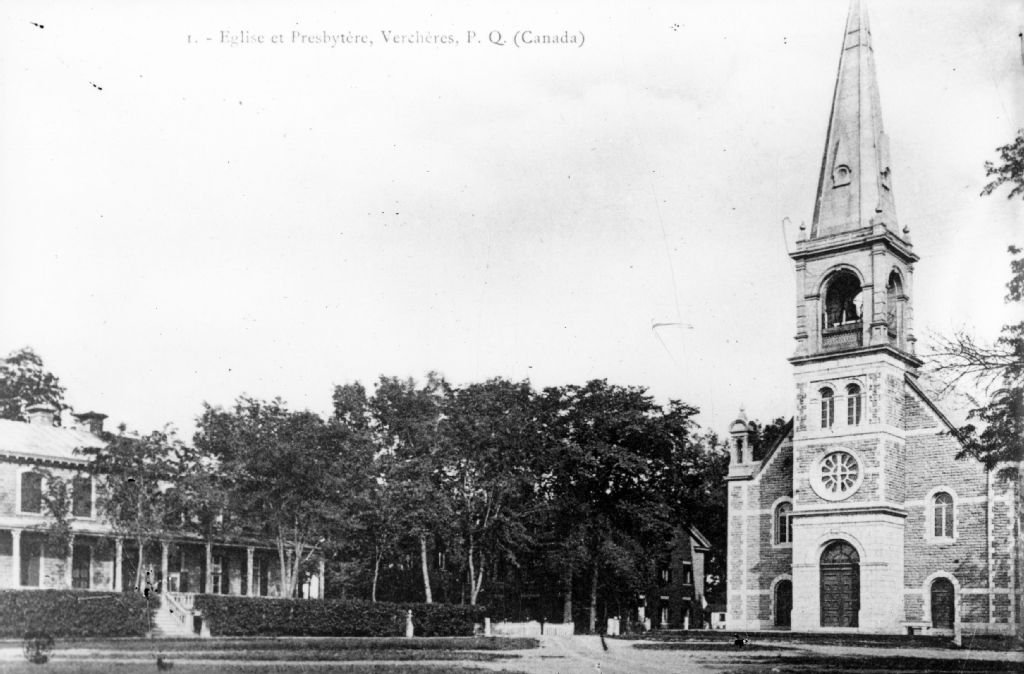 Église et presbytère, Verchères, Province de Québec, [Vers 1910], Archives nationales à Montréal, Fonds Joseph-Louis Cartier, (06M,P68,P123), Cartier, Joseph-Louis.