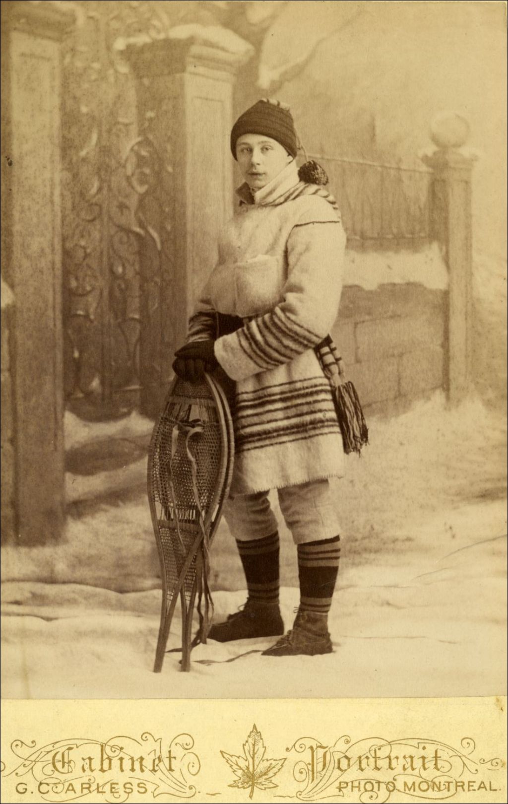 Portrait d'un homme avec des raquettes à neige, [vers 1900], Archives nationales à Montréal, Fonds William Cuthbert, (06M,P70,P38), Cuthbert, William.