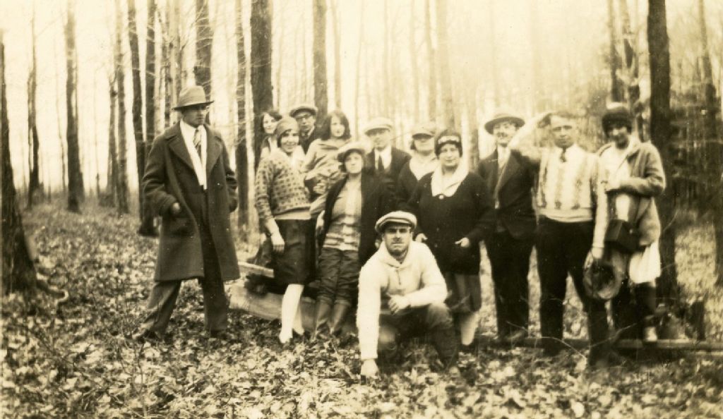 Groupe de personnes à la cabane à sucre, [Vers 1925], Archives nationales à Montréal, Collection Monique Mercure-Vézina, (06M,P157,S4,P244), Mercure-Vézina, Monique.