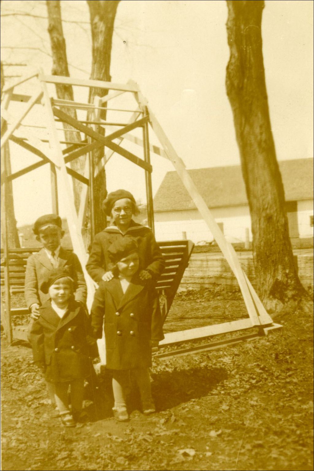 Jeunes enfants devant une balancoire