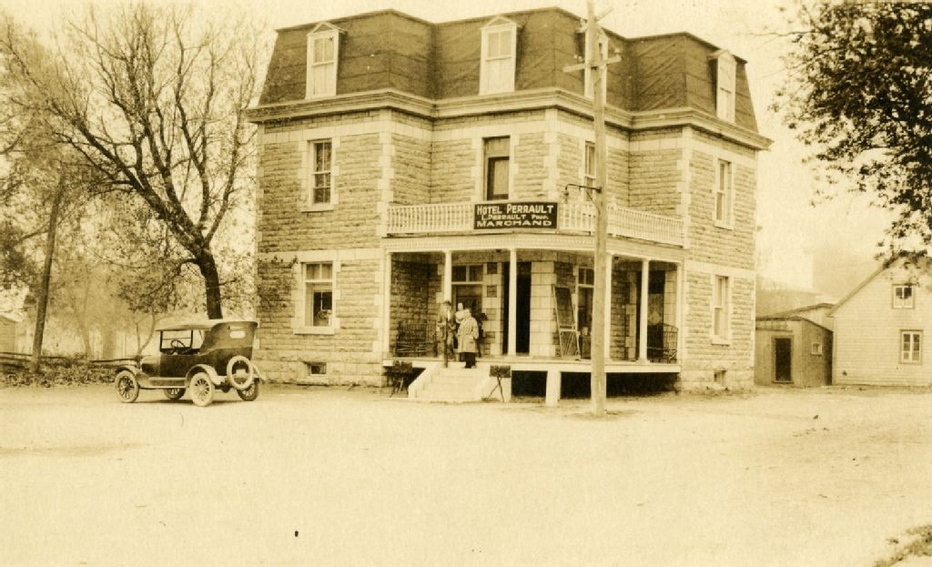 Hôtel Perreault - L. Perreault, propriétaire et marchand, [Vers 1925], Archives nationales à Montréal, Collection Monique Mercure-Vézina, (06M,P157,S4,P541), Mercure-Vézina, Monique.