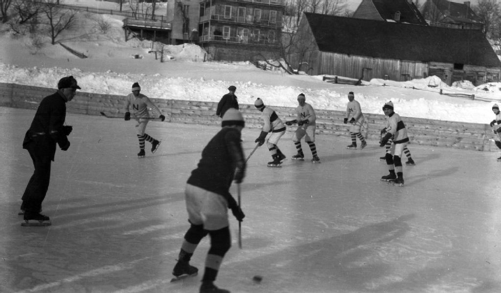 Neuville joueurs de hockey, [Vers 1925], Archives nationales à Montréal, Collection Monique Mercure-Vézina, (06M,P157,S4,P996), Mercure-Vézina, Monique.