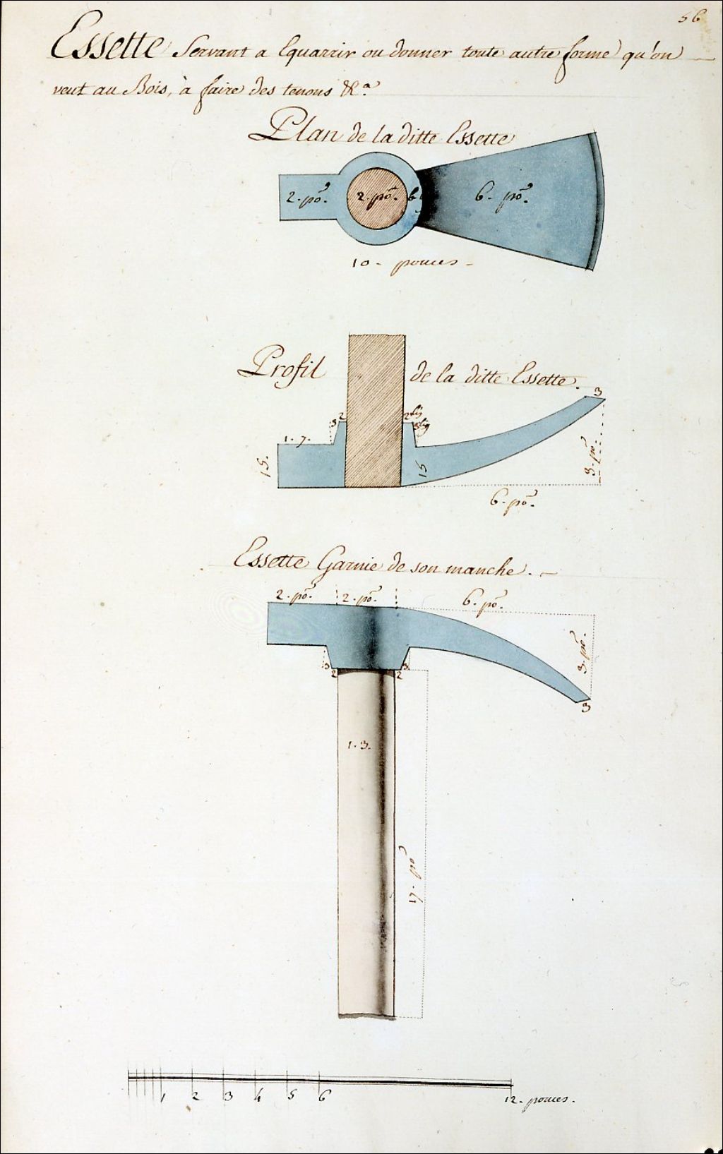 Essette, [Vers 1740], Archives nationales à Montréal, Collection de dessins d'outils du XVIIIe siècle, (06M,P178,D56), Photographe non identifié.