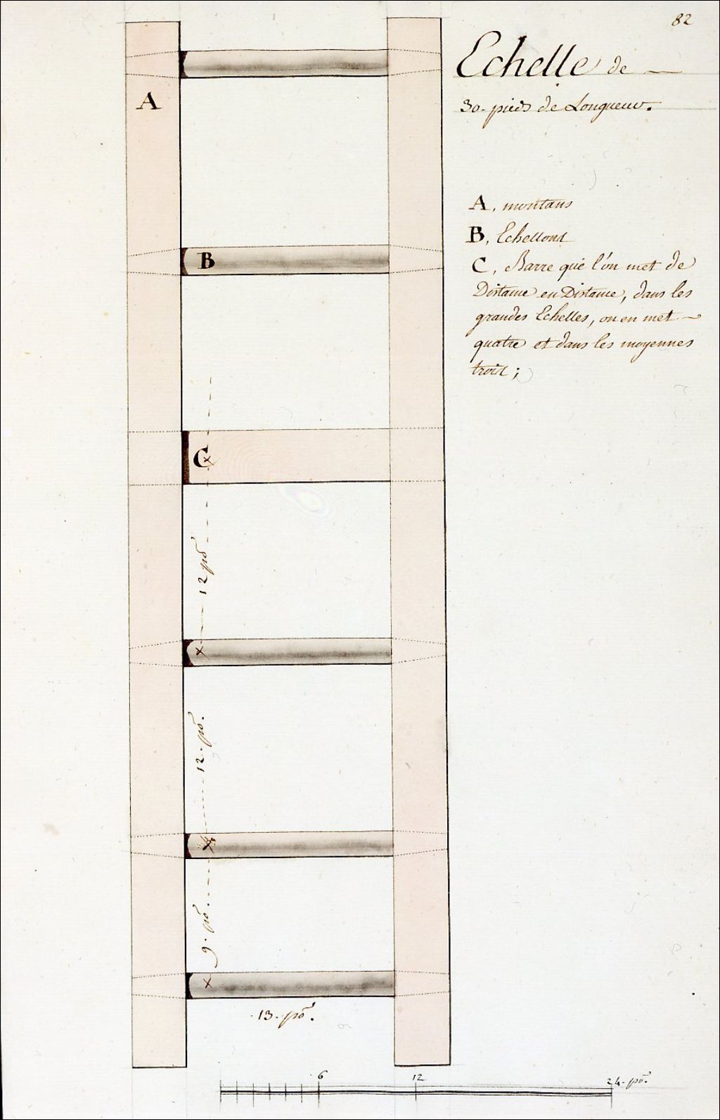 Echelle, [Vers 1740], Archives nationales à Montréal, Collection de dessins d'outils du XVIIIe siècle, (06M,P178,D82), Photographe non identifié.