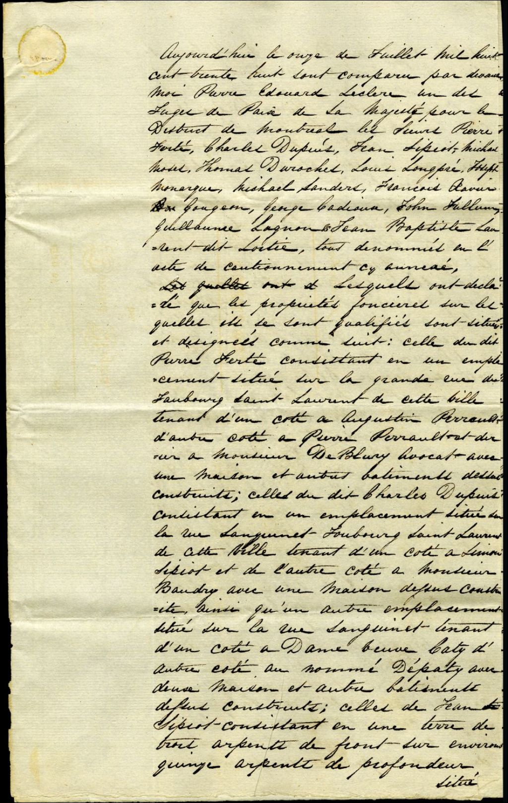 - Acte de cautionnement, établit par P.E. Leclerc, juge de paix de la Majesté pour le district de Montréal