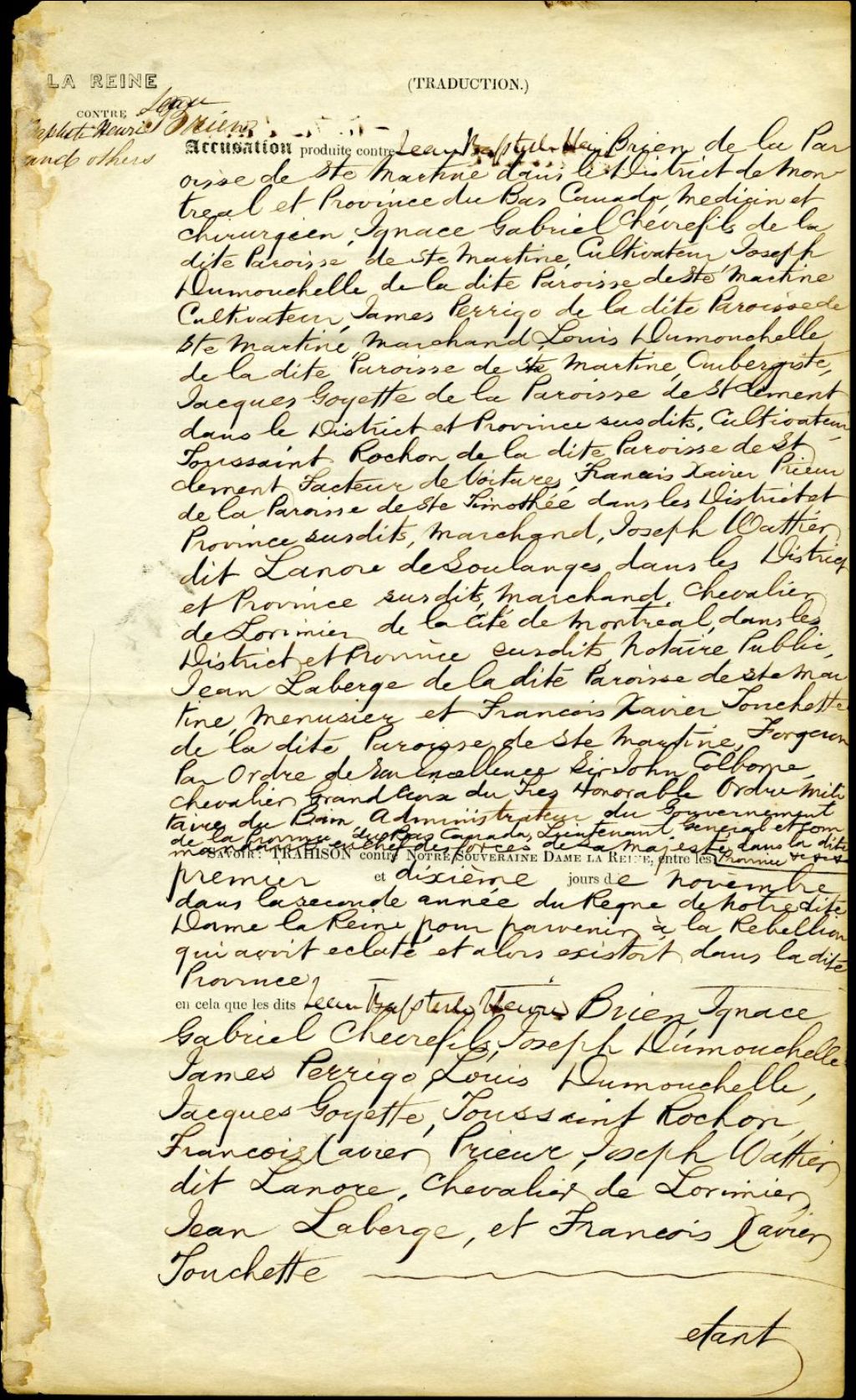 Acte d'accusation contre 11 individus pour leur participation à la Rébellion