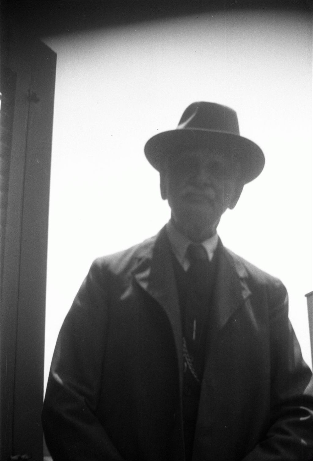 Antoine Hudon, 89 ans, sur le balcon, 20 juin 1937, Archives nationales à Montréal, Fonds Antoine Hudon, (06M,P280,S2,P48), Photographe non identifié.