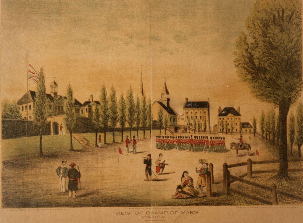 View of Champ-de-Mars = Vue du Champ-de-Mars à Montréal, 1830, Archives nationales à Montréal, Collection initiale, (06M,P318,S4,P2), W. Lenny et A. Bourne.