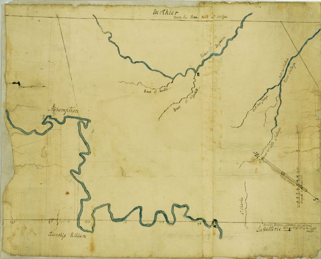 Cette pièce montre les lignes frontalières entre ces seigneuries et celle d'Antaya (territoire de Berthier) à l'est, celles de la seigneurie de Lavaltrie et du canton de Kildar à l'ouest, ainsi que celles des seigneuries de Daillebout et Ramezay au nord. Les rivières l'Assomption, Bayonne et Chaloupe y sont représentées, de même que les ruisseaux Saint-Charles, Sainte-Élisabeth et Saint-Martin