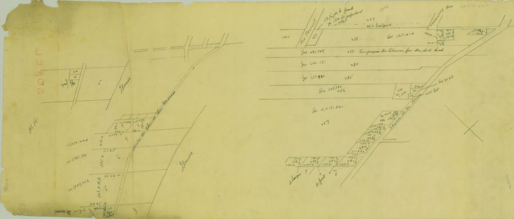 Cette pièce localise des terres appartenant entre autres à la compagnie du Chemin de fer du Sud-Est et d'autres situées le long du Chemin du chenal du moine et du Chemin de la Reine