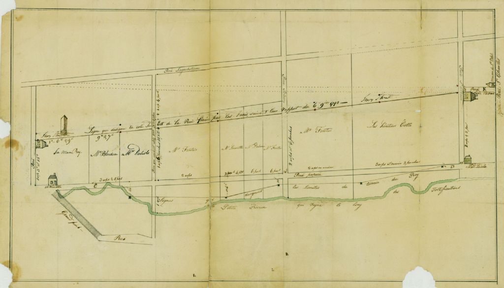 Cette pièce présente une portion de Montréal située dans le quadrilatère formé par les limites du Faubourg Saint-Antoine (est), la rue Lagauchetière (nord), la rue Saint-Urbain (ouest) et la Petite Rivière qui longeait les fortifications (sud).Il désigne les limites de rues projetées ou fixée par les jurés de la Cour du Banc du Roi. Plusieurs propriétés sont affectées par ce projet d'aménagement dont celles entre autres de Jean-Marie Roy et Maurice Blondeau