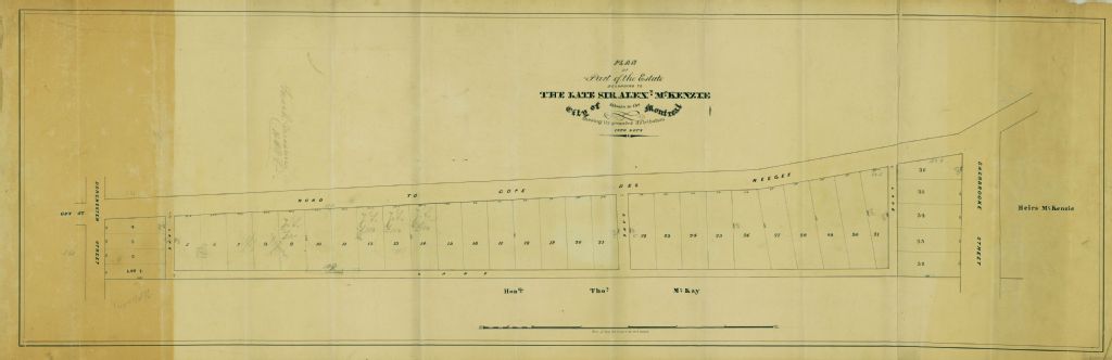 Plan of Part of the Estate belonging to The Late Sir Alex[ande]r McKenzie situate in the City of Montreal shewing proposed distribution into Lots
