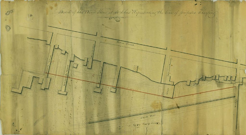 Sketch of the River Shore at St. Johns Representing the line of proposed Wharfing