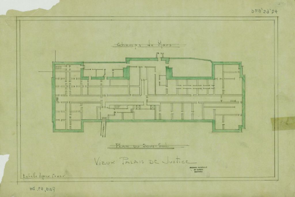 Plans de l'ancien palais de justice de Montréal, [Vers 1880], Archives nationales à Montréal, Collection initiale, (06M,P318,S9,D4), Photographe non identifié.