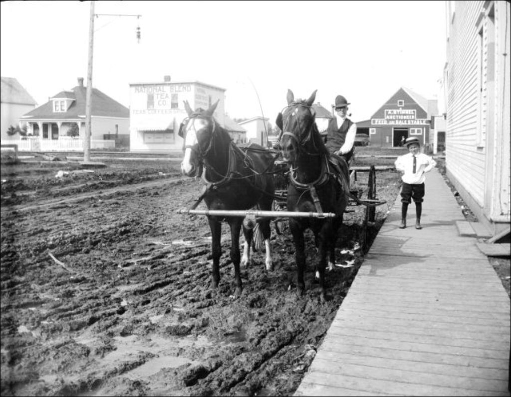 Une rue avec des trottoirs de bois