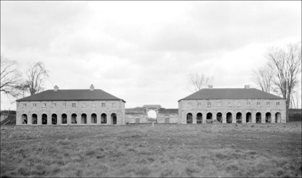 Caserne militaire au Fort Lennox, l'Île-aux-Noix, 16 octobre 1910, Archives nationales à Montréal, Fonds William Murray, (06M,P401,S1,P84), Murray, William, né [vers 1865].
