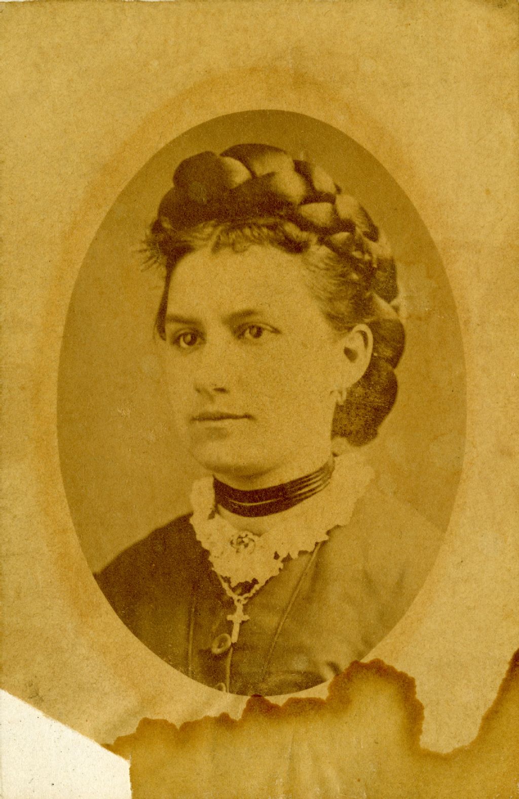 Née en 1852. Fille de Jean-Joseph Girouard et Émilie Berthelot. Épouse Charles-Odilon Dacier en 1872. Annotations au verso : "Perpétue Girouard avant son mariage" et "Anne-Marie Dacier", nom de la propriétaire de la photographie et fille de Perpétue Girouard