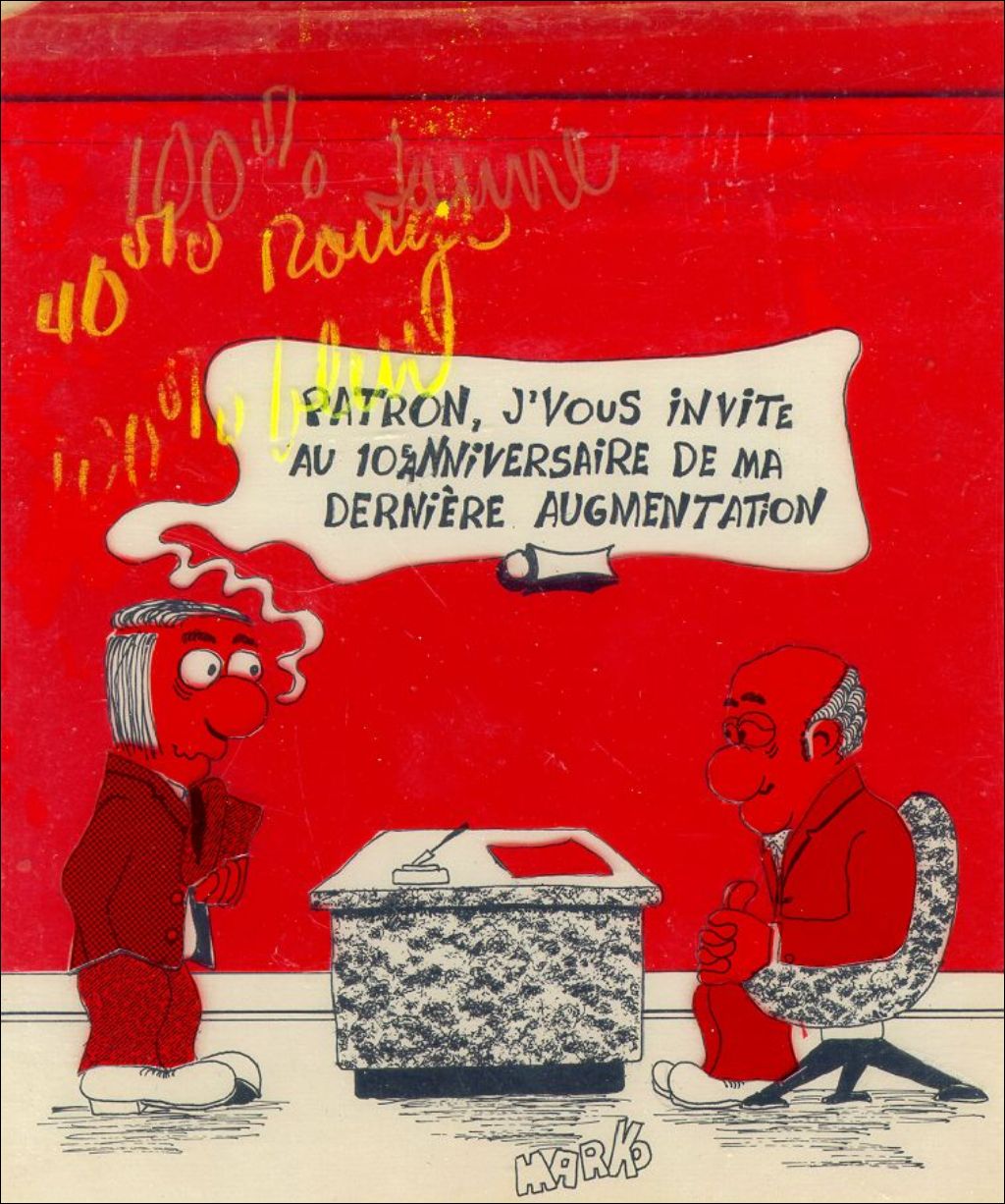 "La dernière augmentation de salaire", 1974, Archives nationales à Montréal, Fonds Jean-Marc Phaneuf, (06M,P575,S4,SS1,P5), Jean-Marc Phaneuf.