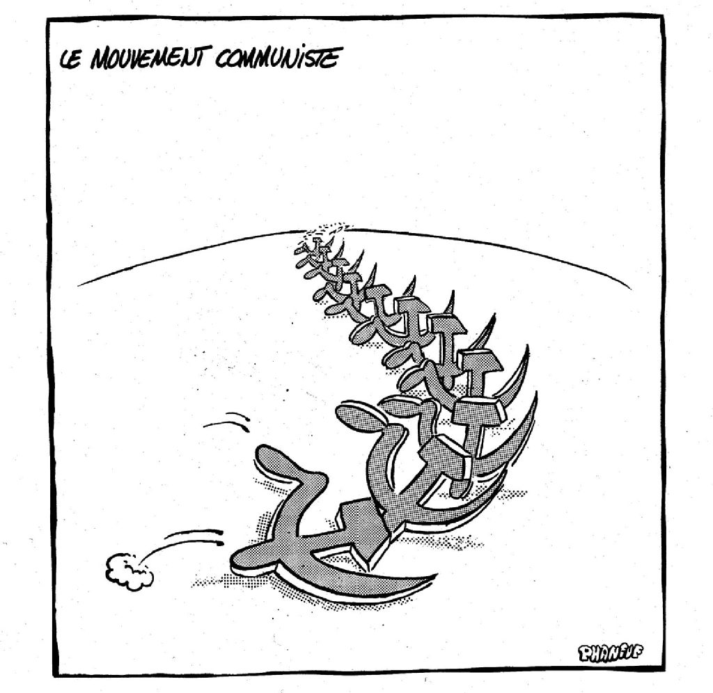 Le symbole de l'URSS tombe. Au verso de la caricature se retrouve la mention suivante : À l'époque, cette caricature fut refusée en me donnant comme raison que je dramatisais un peu trop la situation (...)