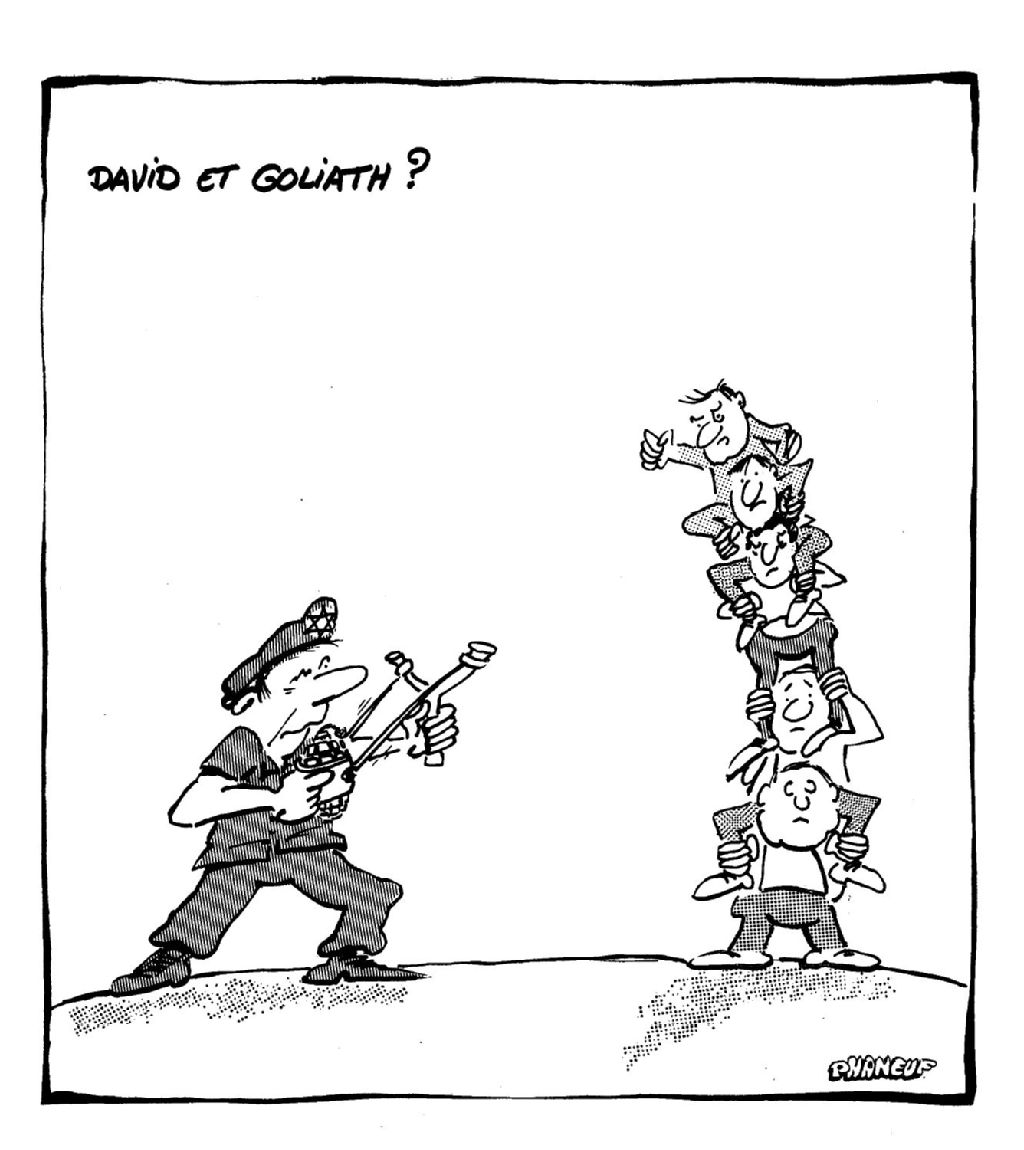 David et Goliath, [Vers 1988], Archives nationales à Montréal, Fonds Jean-Marc Phaneuf, (06M,P575,S4,SS4,P128), Jean-Marc Phaneuf.