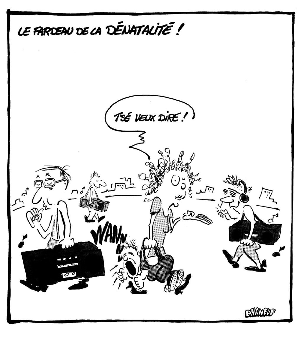 Le fardeau de la dénatalité, [Vers 1988], Archives nationales à Montréal, Fonds Jean-Marc Phaneuf, (06M,P575,S4,SS4,P220), Jean-Marc Phaneuf.