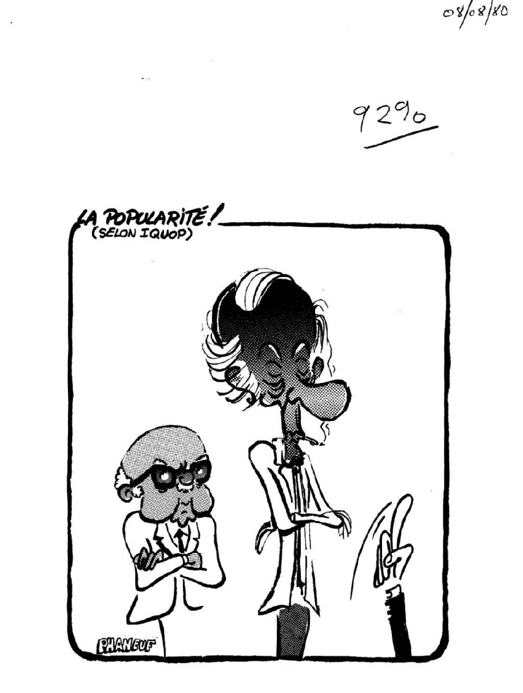 La popularité (selon Iquop), 8 août 1980, Archives nationales à Montréal, Fonds Jean-Marc Phaneuf, (06M,P575,S4,SS4,P298), Jean-Marc Phaneuf.