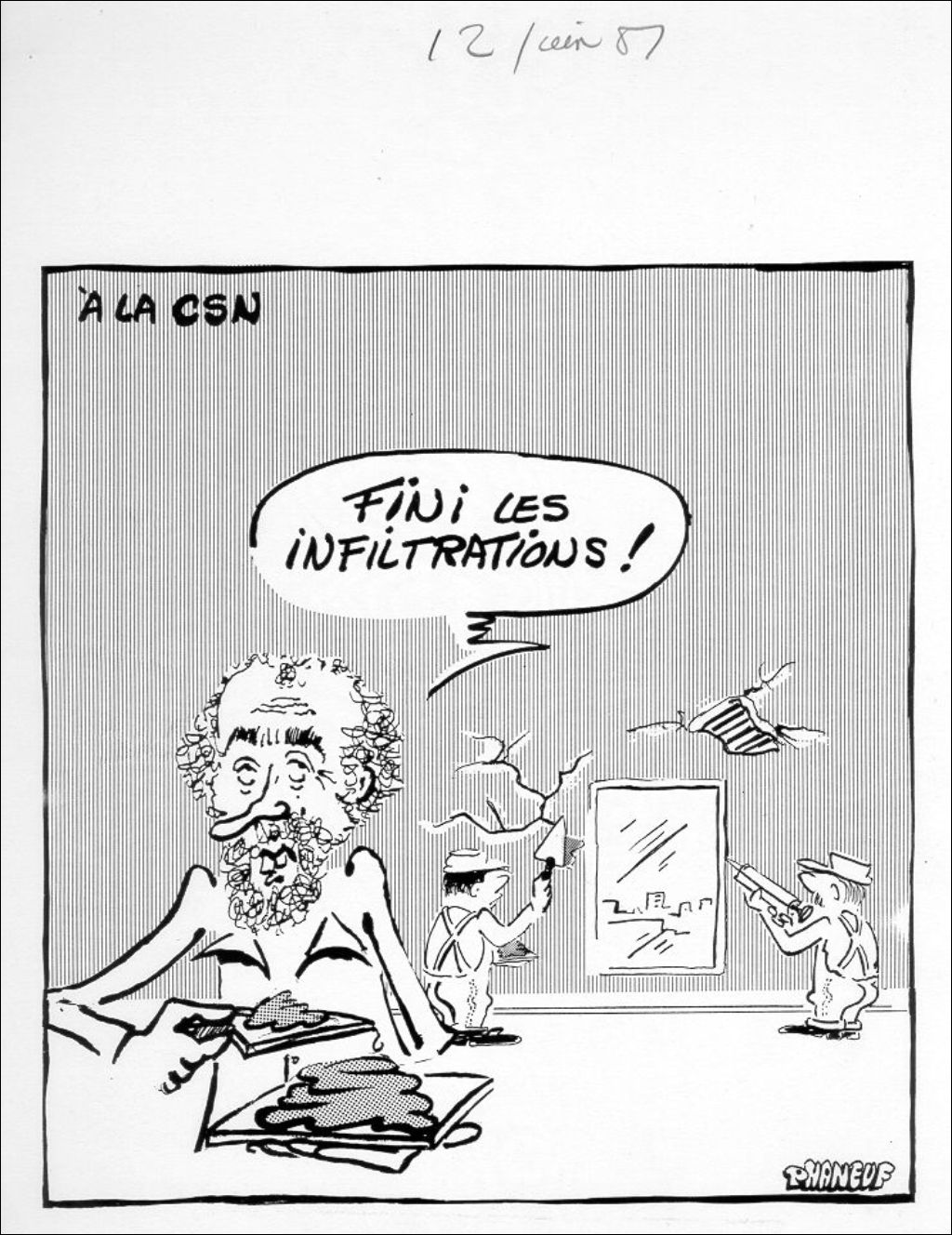 À la CSN, 12 juin 1987, Archives nationales à Montréal, Fonds Jean-Marc Phaneuf, (06M,P575,S4,SS4,P344), Jean-Marc Phaneuf.