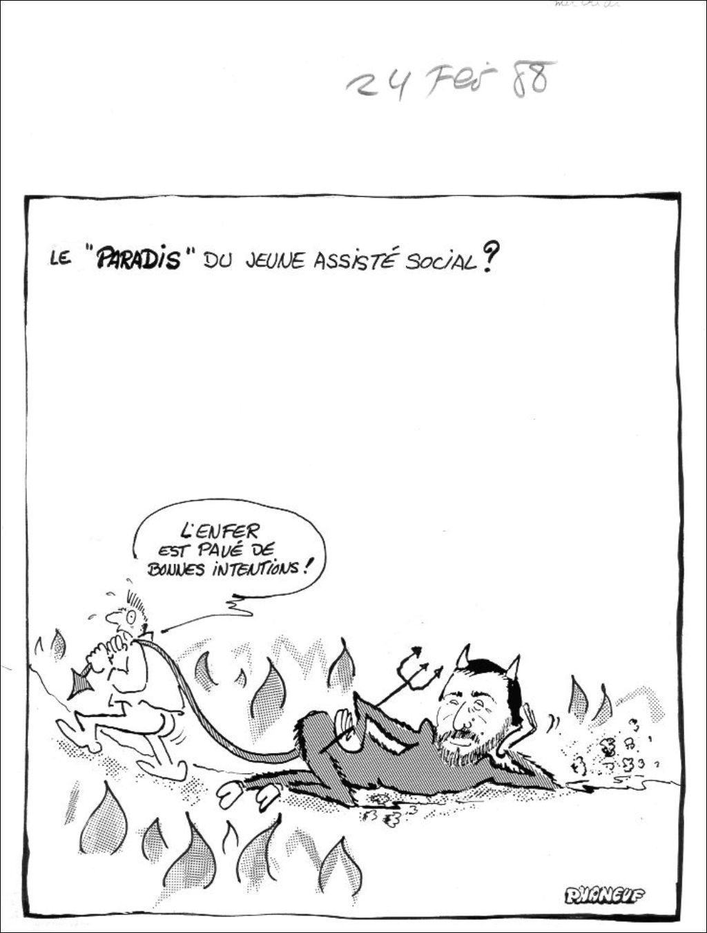 Le "Paradis" du jeune assisté social, 24 février 1988, Archives nationales à Montréal, Fonds Jean-Marc Phaneuf, (06M,P575,S4,SS4,P459), Jean-Marc Phaneuf.