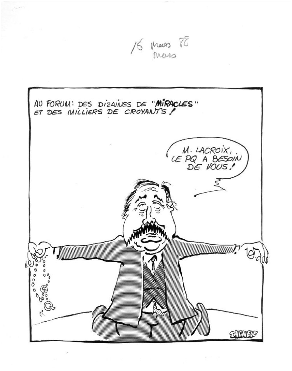 Au forum : des dizaines de "miracles" et des milliers de croyants, 15 mars 1988, Archives nationales à Montréal, Fonds Jean-Marc Phaneuf, (06M,P575,S4,SS4,P470), Jean-Marc Phaneuf.
