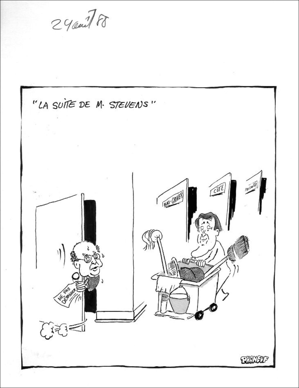 Après avoir fait le ménage chez les parlementaires André Bissonnette, Michel Côté et Suzanne Blais-Grenier, Brian Mulroney s'approche du bureau de Sinclair Stevens qui ne veut pas être dérangé
