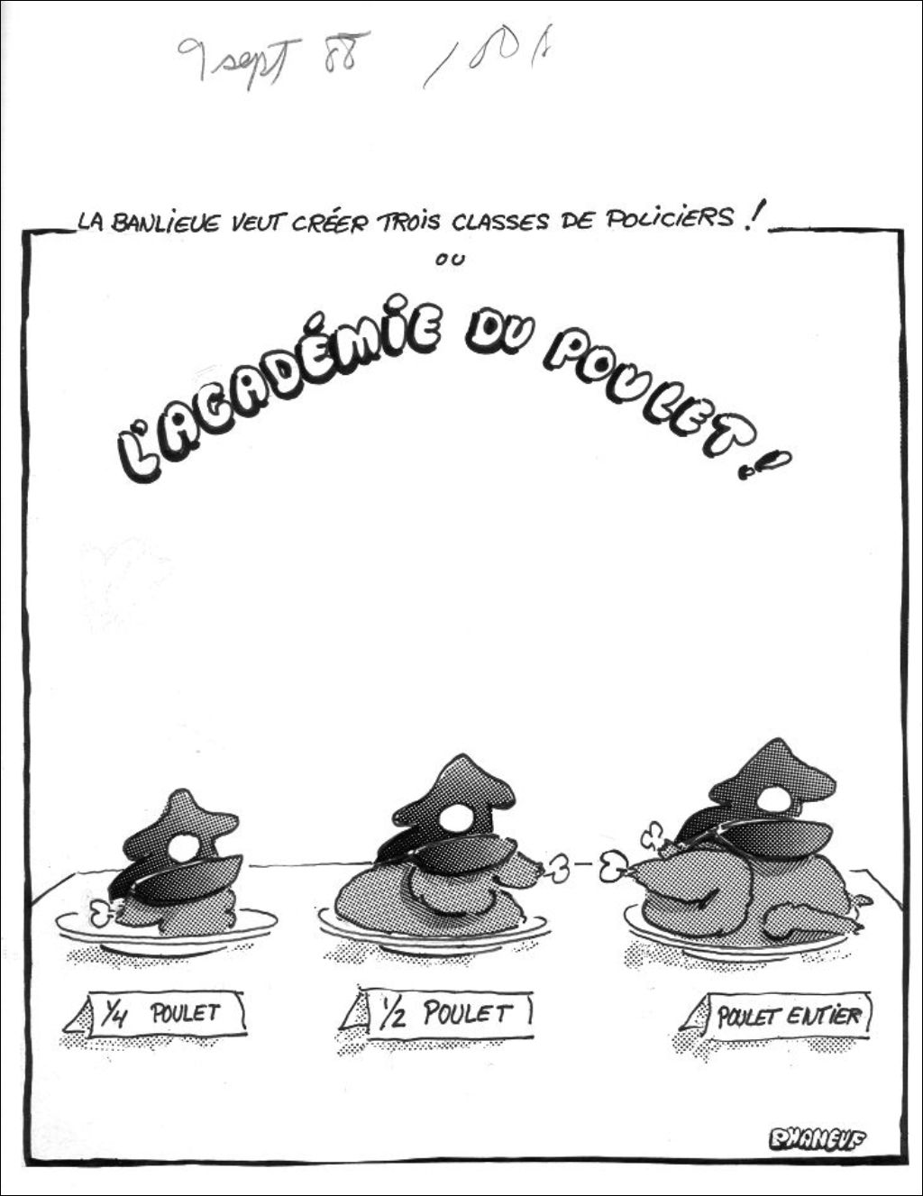 La banlieue veut créer trois classes de policiers, 9 septembre 1988, Archives nationales à Montréal, Fonds Jean-Marc Phaneuf, (06M,P575,S4,SS4,P543), Jean-Marc Phaneuf.