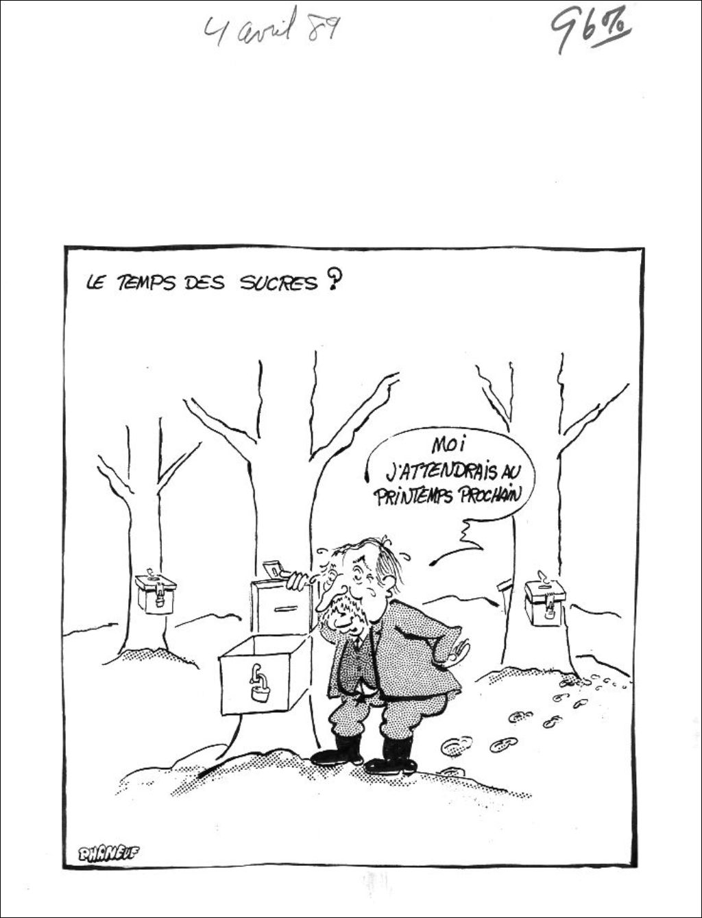 Le temps des sucres, 4 avril 1989, Archives nationales à Montréal, Fonds Jean-Marc Phaneuf, (06M,P575,S4,SS4,P630), Jean-Marc Phaneuf.